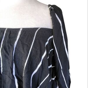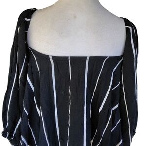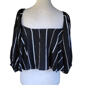 Faithfull The Brand Black White Stripe Square Neck Peasant Style Blouse Small