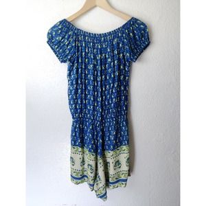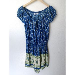 Faithfull The Brand Blue Green Paisley Print Off The Shoulder Romper Size XS