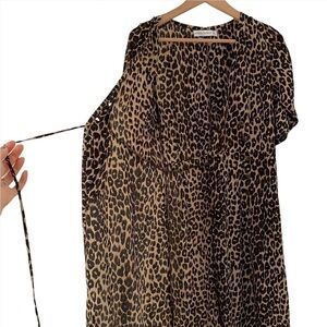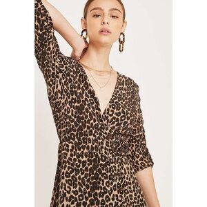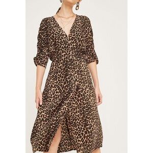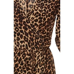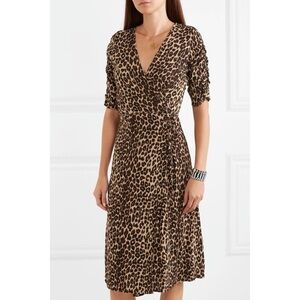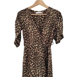 Faithfull The Brand Brown Leopard Print Crepe Wrap Midi Dress sz 2