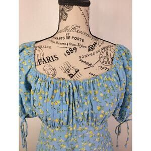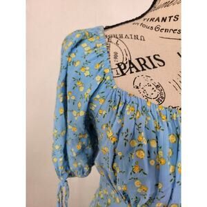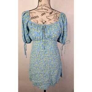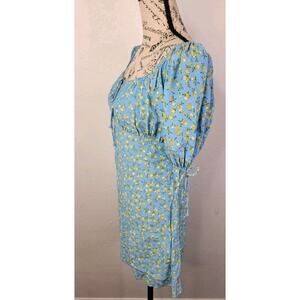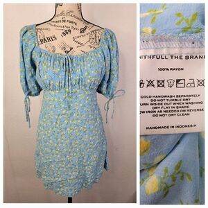 Faithfull The Brand Charlotte Mini Dress 6 Smocked Ditsy Floral Puff Sleeve Boho