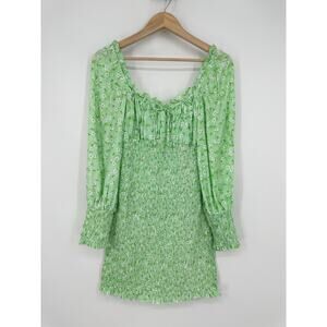 Faithfull The Brand Cosima Mini Dress Floral Ruffle Smocked Balloon Sleeve