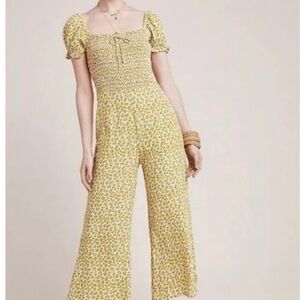 Faithfull The Brand Size S Daisy Floral Smocked Della Jumpsuit Wide Leg Prairie.