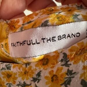 Faithfull The Brand Daphne Floral Mini Dress Yellow Back Zip Short Sleeve Sz M