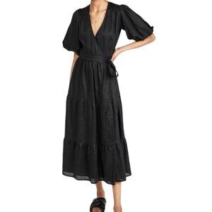 Faithfull The Brand Dress Women 2 Black Linen Edee Wrap Maxi Lagenlook Gothic