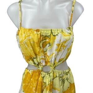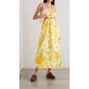 Faithfull The Brand El Rio 100% Linen Yellow Floral Cutout A Line Maxi Dress 6