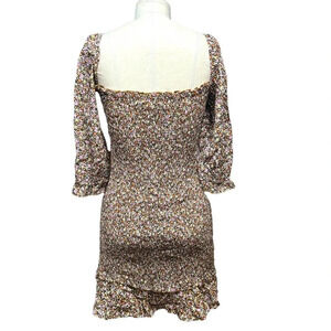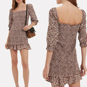 Faithfull The Brand Es Saada Floral Smocked Dress Brown Pink Size 2