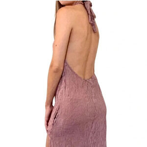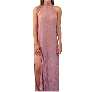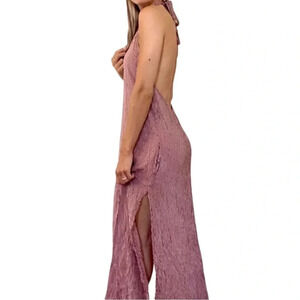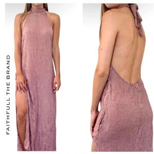 Faithfull The Brand Halter Mirror Door Striped Maxi Dress Slit Sides Size 6