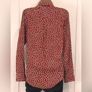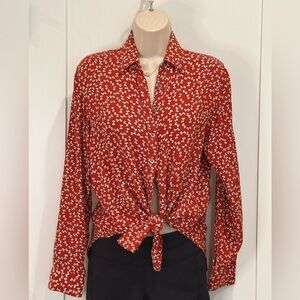 Faithfull The Brand Hosk Top in Pin Up Bow Print Red Long Sleeve Button Up