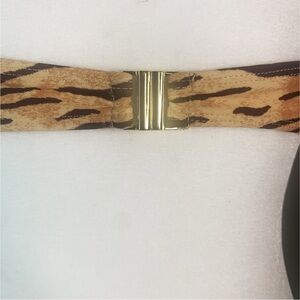 The Lavande is a balconette style bikini top in wyldie animal print, with thin over-the-shoulder straps and an underwire bust. Gold metal clasp to center back. Fully lined.