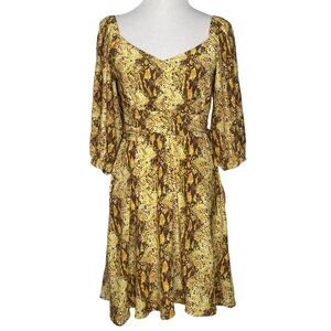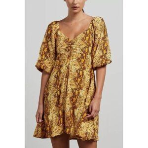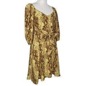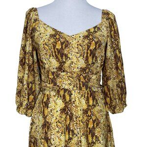 Faithfull The Brand Martine Dress Size 12 Dawn Animal Print Waist Tie FLAWED