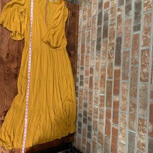 Faithfull The Brand Melia Arwen Tiered Butterscotch USA 8 / Large Midi Dress EUC