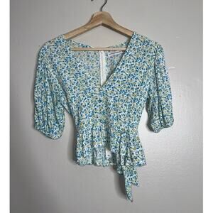 Faithfull The Brand Mona Top Tilde Floral Blue Green Size 2/XS Bohemian