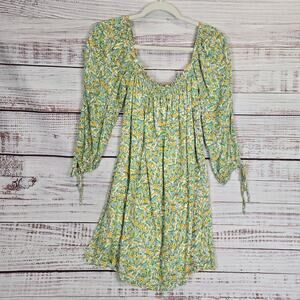 Faithfull The Brand Dress Womens Medium Green Yellow Floral Puff Sleeve Lined