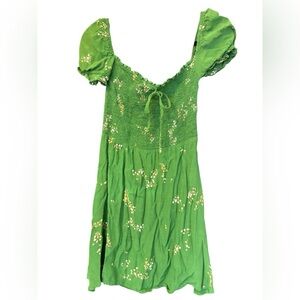 Faithfull The Brand Revolve Anthro Green Cap Sleeve Smocked Floral Mini Size S