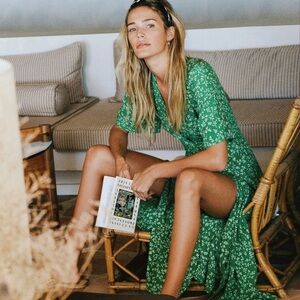 Faithfull The Brand Rivera Wrap Dress in Green Violette Size Medium 6