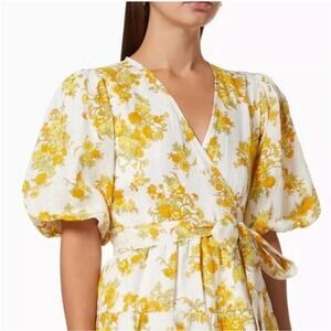 Faithfull The Brand Rooney Wrap Mini Dress linen yellow floral size 4