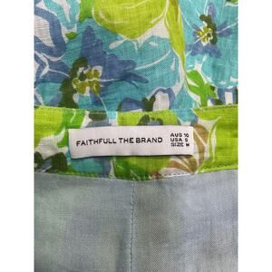 Faithfull The Brand 'Sa Sommas' Green Linen Skort Size M: fully lined, hidden side zipper closure, back slip pockets, lightweight linen fabric.
