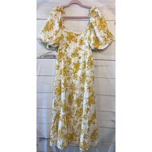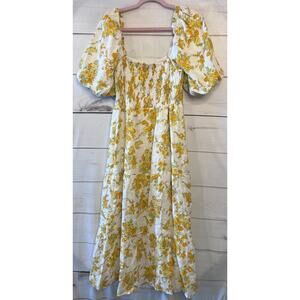 Faithfull The Brand Size MED Maxi Dres White Floral Print Smocked Back Boho