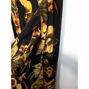Faithfull The Brand Sz 6 Wrap Pants Black Orange Floral Palazzo Front Slits Pull On