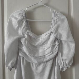 EXCLUSIVE AT NET-A-PORTER. Faithfull The Brand's summery collections are made locally in Bali, Indonesia, to spotlight the region's traditional craftsmanship and talented artisans. Cut from OEKO-TEX100®-certified linen, this 'Venezia' dress has puffed sleeves that frame a pintucked bodice and a shirred panel at the back.