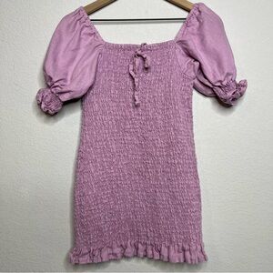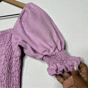 Faithfull The Brand Women Dress Annibelis Smocked 100% Linen Mini Purple Summer 4 [Small]