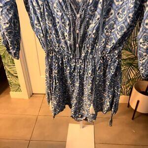 Faithfull The Brand Women's Blue Woodstock Playsuit Size Medium
