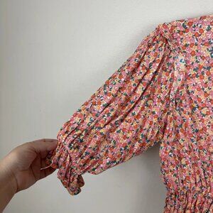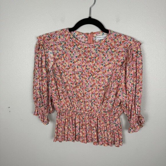 Faithfull The Brand Women's Pink Caleta Ruffle Floral Peplum Top Size XS/2