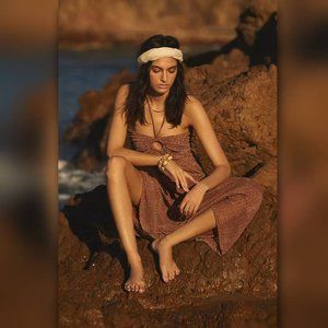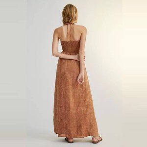 Size: 10 Color: BROWN MOTIF - Linen; rayon lining - Cutout detail - Bandeau neckline - Halterneck ties - Pullover styling Dimensions: - Falls 51" from shoulder