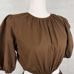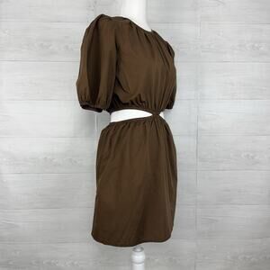 Faithfull the Brand Adelfia Cut Out Dress Size 4 Chocolate Brown Puff Sleeves
