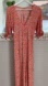 Beautiful Faithfull the Brand “Anka” floral print jumpsuit featuring a coral pink base with yellow and green ditsy flowers. Designed with puff sleeves, a deep V-neckline, and a fitted bodice that flatters the waist before flowing into a wide-leg silhouette. Decorative fabric-covered buttons and a self-tie sash at the back complete this breezy, feminine look — perfect for spring and summer days or resort wear.