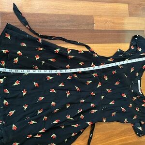 Faithfull the Brand Black Dress with Red Floral Pattern