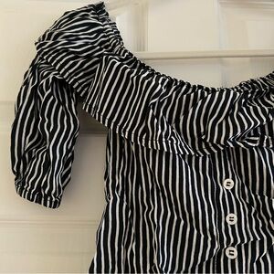 Faithfull the Brand Black and White Puff Sleeve Blouse