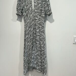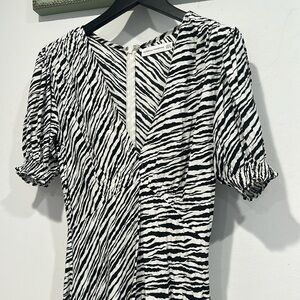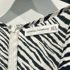 Faithfull the Brand Black and White Puff Sleeve Sheath Midi Dress zebra size 2