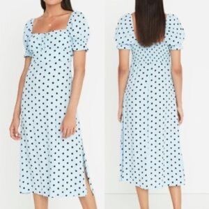 Faithfull the Brand- Evelyn Sylvie Blue Polka Dot Midi Dress