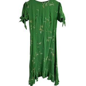 Faithfull the Brand Emilia Green Floral Print Midi Dress Size 2