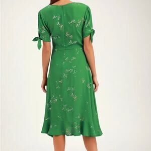Never lose hope in the Faithfull the Brand Emilia Green Floral Print Midi Dress! Lightweight and gauzy green fabric boasts an elegant floral print in hues of white, yellow, and taupe. The bateau neckline and darted bodice are neatly accentuated by cute short sleeves ending in adorable keyhole details and tie knot accents. A classy A-line skirt ends in a trendy ruffled midi hem. Hidden clasp and zipper at back.