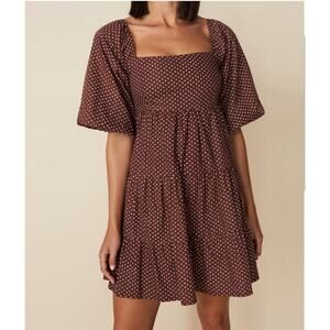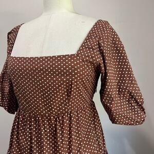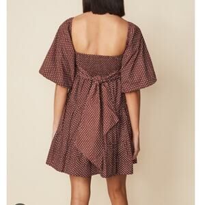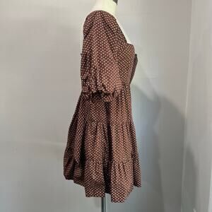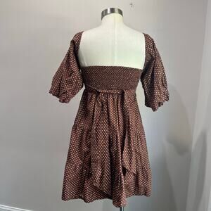 Faithfull the Brand Eryn Mini Dress Brown & White Polka Dot Puff Sleeve Sz 4