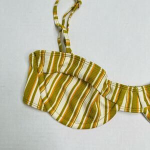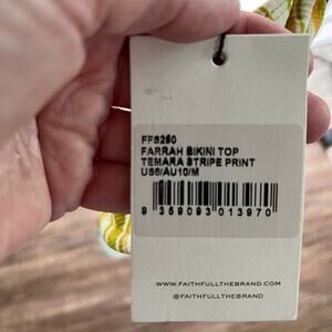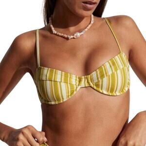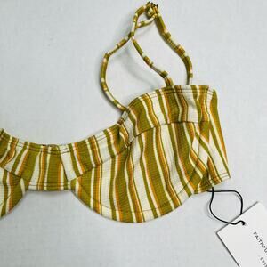 Faithfull the Brand Farrah Bikini Top Temara Multi Green Stripe 6/Medium NWT