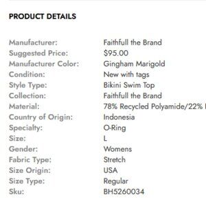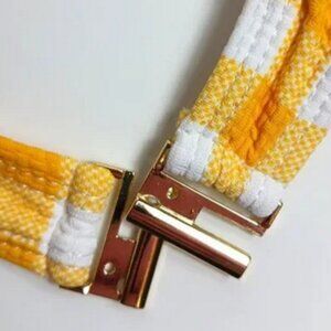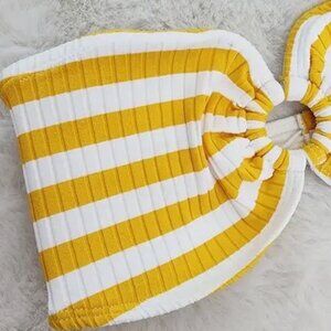 Faithfull the Brand Faye O-Ring Bandeau Bikini Swim Top Marigold Stripe