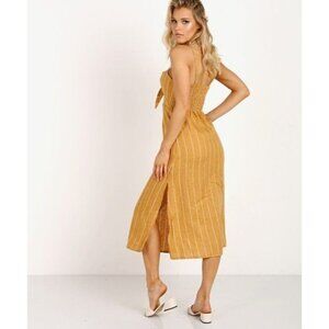 The Fiscardo is a sweet handmade midi dress woven from light and airy linen and cut to perfection with a front knot detail, adjustable straps, back smocking and split sides.