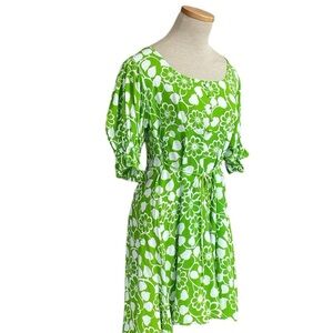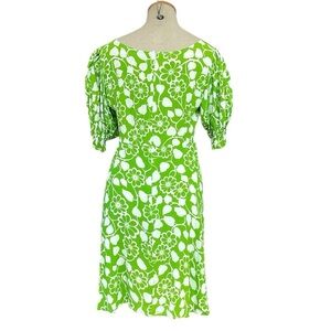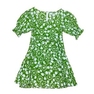 Faithfull the Brand Floral Green Dress Summer Puff Sleeve Size Medium