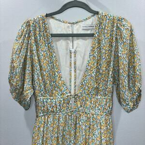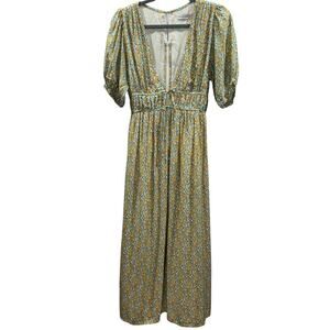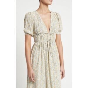 Faithfull the Brand Floral Midi Dress Sz. Small | Puff Sleeve Tie Front Feminine