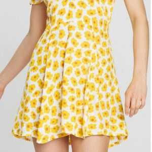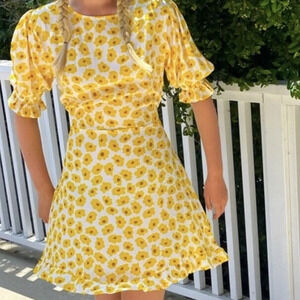 Faithfull the Brand Florence Mini Dress Constance Floral Print Marigold US 4 S