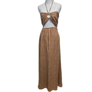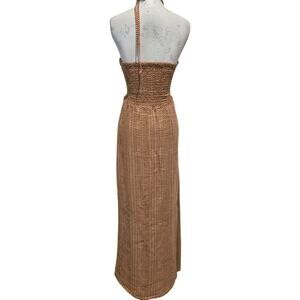 Faithfull the Brand La Costa Halter Smocked Back Linen Print Maxi Dress - US 10