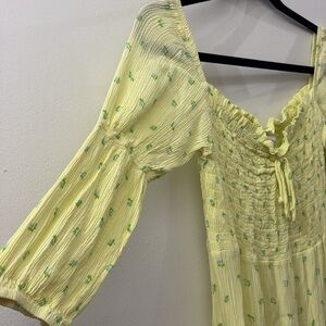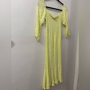 Faithfull the Brand Lemon Floral Smocked Dress - medium - 3/4 sleeve
