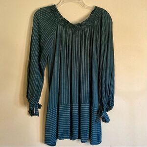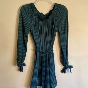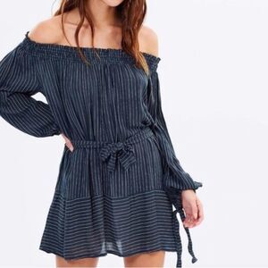 Faithfull the Brand Mali Mini Dress Gray Pinstripe Off Shoulder w/ Belt Size 2/4