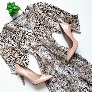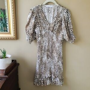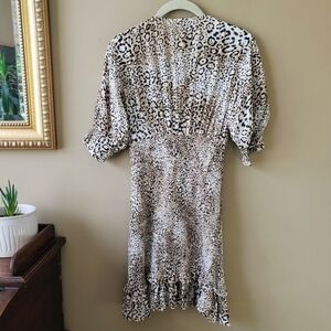 Faithfull the Brand Margarita Mini Dress Leopard Print Smocked Puff Sleeve XS