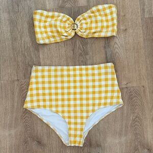Faithfull the Brand Marigold Checkered Bandeau & High Waisted Bottom Bikini