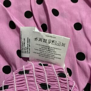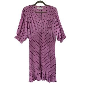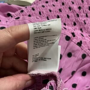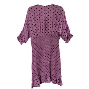 Faithfull the Brand Polka Dot Shirred Smocked Mini Dress Pink Black – Size 10
