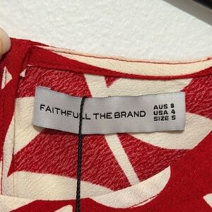 Faithfull the Brand Clementine Dress in size Small. New with tags. No flaws. The Clementine Maxi Dress in De La Paz Floral Pattern gathers softly at the sides and features a high rounded neckline and a back waist tie to cinch as desired.